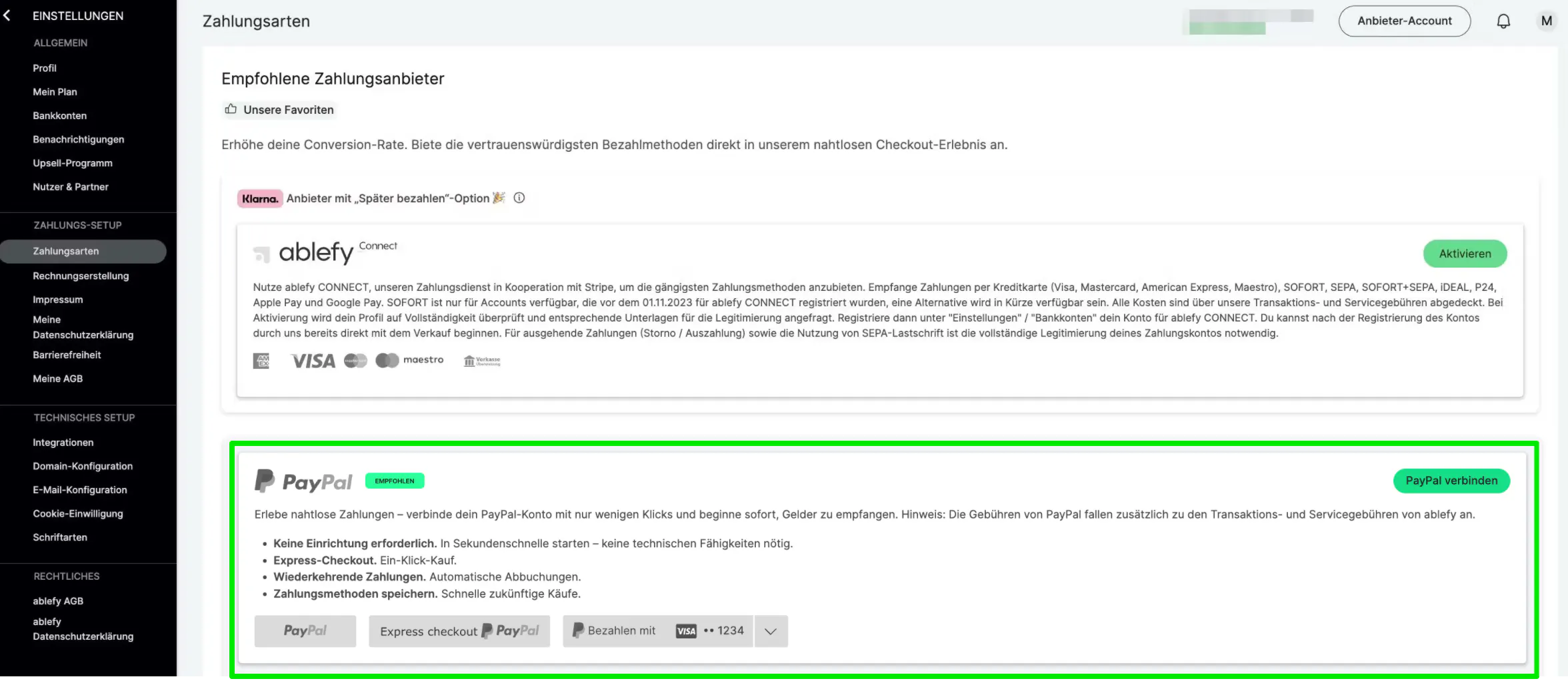 Hast du PayPal noch nicht angebunden, nutze direkt die neue Anbindung.